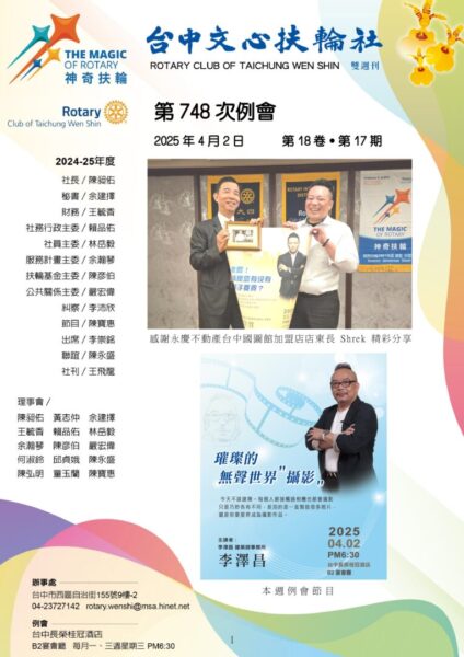 扶輪社刊文心週訊第11卷第7期 文心週訊第19卷第7期 文心週訊第19卷第6期 文心週訊第19卷第5期 文心週訊第19卷第4期 文心週訊第19卷第3期 文心週訊第19卷第2期 文心週訊第19卷第1期 文心週訊第18卷第22期 文心週訊第18卷第21期 文心週訊第18卷第20期 文心週訊第18卷第18期 文心週訊第18卷第17期 1 2 3 ... 21 下一頁 »