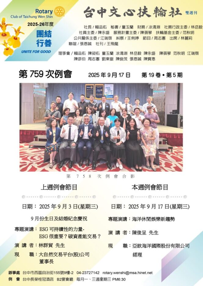 文心週訊第19卷第5期 Categories: -扶輪週訊, 扶輪社刊